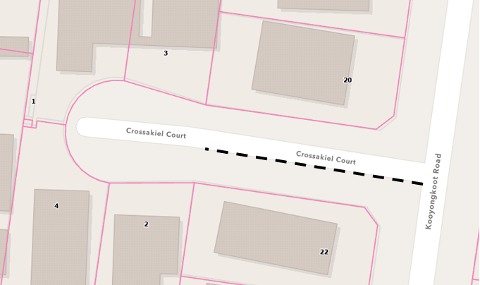 - This consultation is open to all properties that have a property frontage onto Crossakiel Court, Hawthorn. If we receive more than one response for your property, we will contact you to confirm your response.