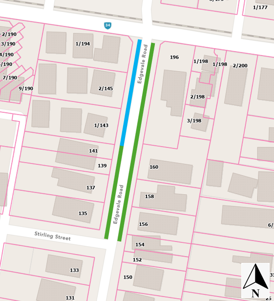 - Introduce '2P, 8 am-6 pm, Mon-Fri' parking restrictions between Stirling Street and No. 141 on the west side (odd-numbered properties), replacing the unrestricted parking.